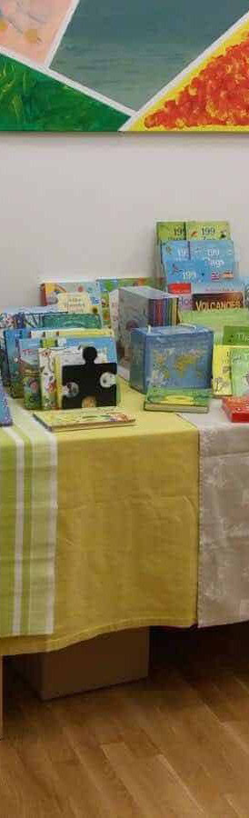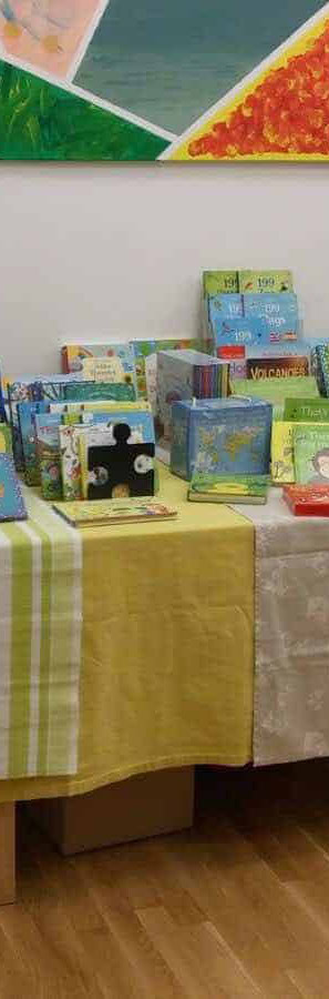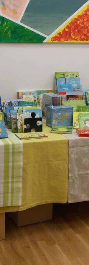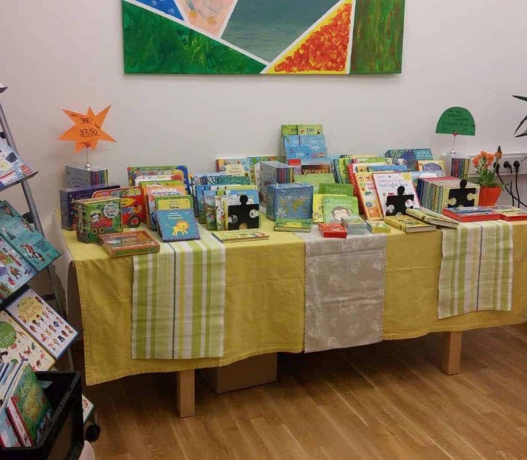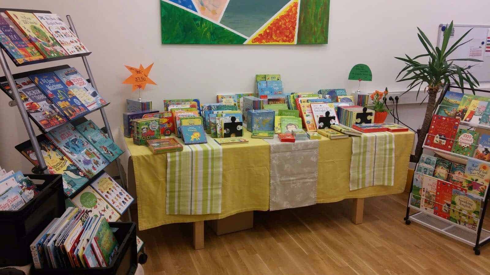 Abhängig vom Umsatz erhält der Kindergarten eine Provision in Form von neuen Englischbüchern für die Kinder Gruppen. Der Kindergarten hat keinen Aufwand, wir bringen alles mit (auch die benötigten Tische) und räumen auch wieder alles weg 🙂