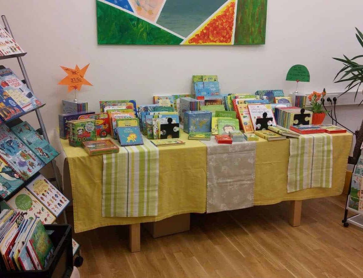 So können Eltern und Kinder stöbern und blättern. Bei Gefallen können die Bücher direkt erworben werden. Wir haben eine finanzkonforme Registrierkasse mit, und akzeptieren Barzahlung sowie alle gängigen Bank- und Kreditkarten.